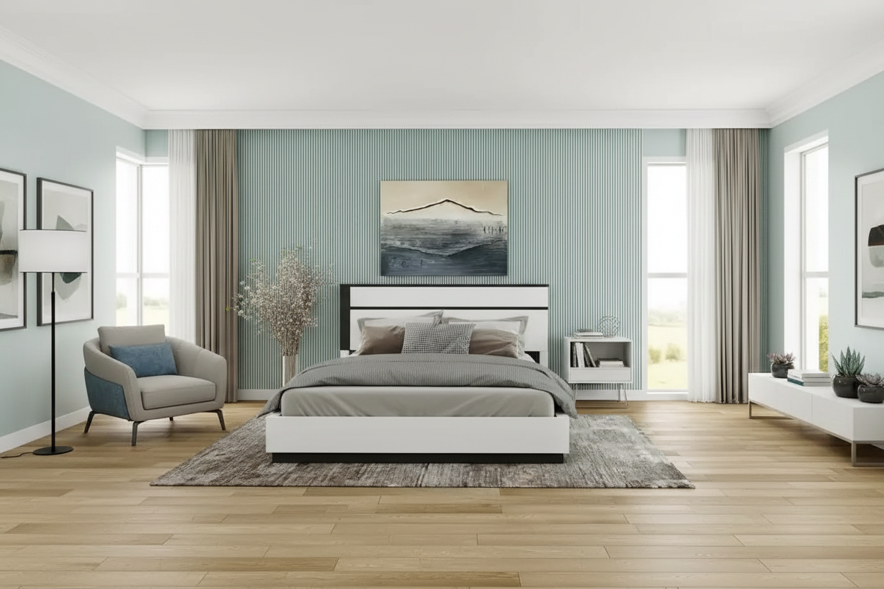 The cabinet features an engineered wood finish, fitted with four acrylic doors and adjustable shelves.